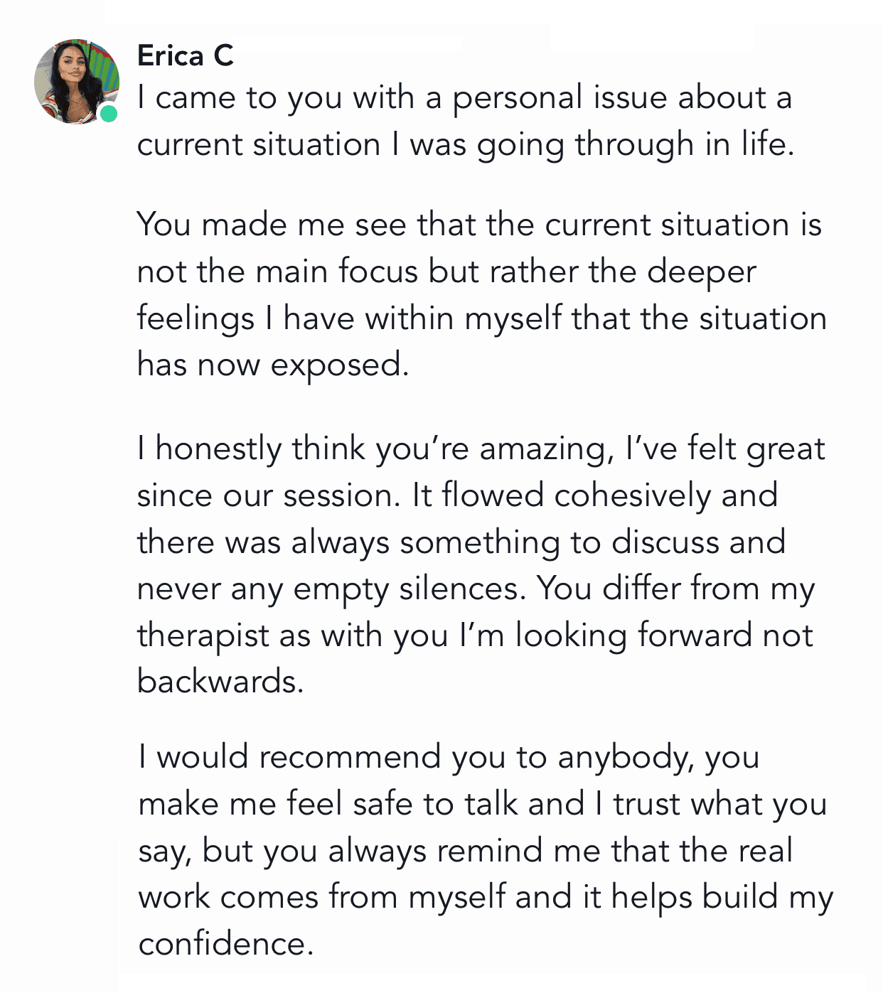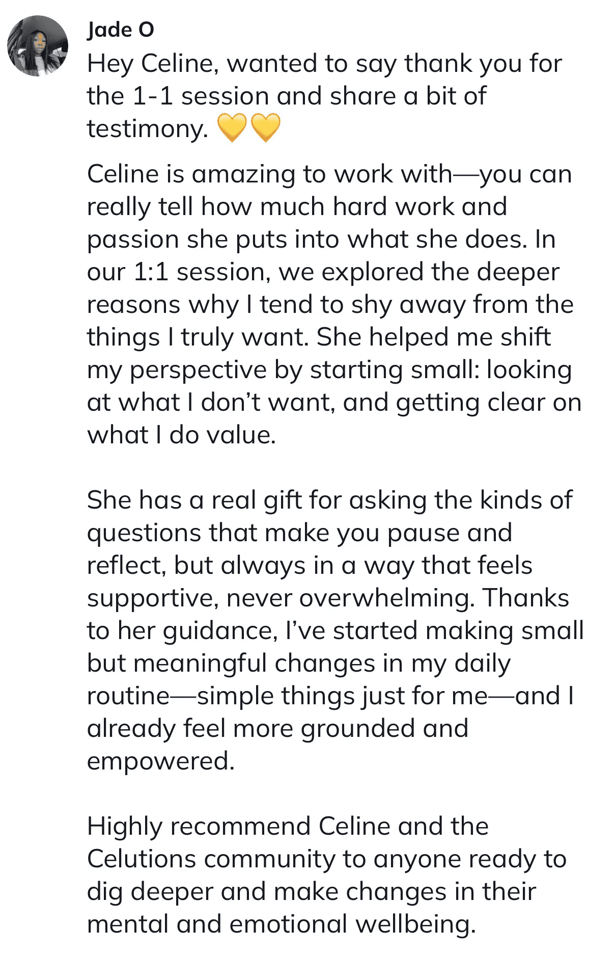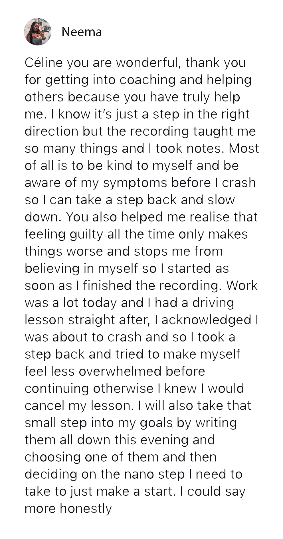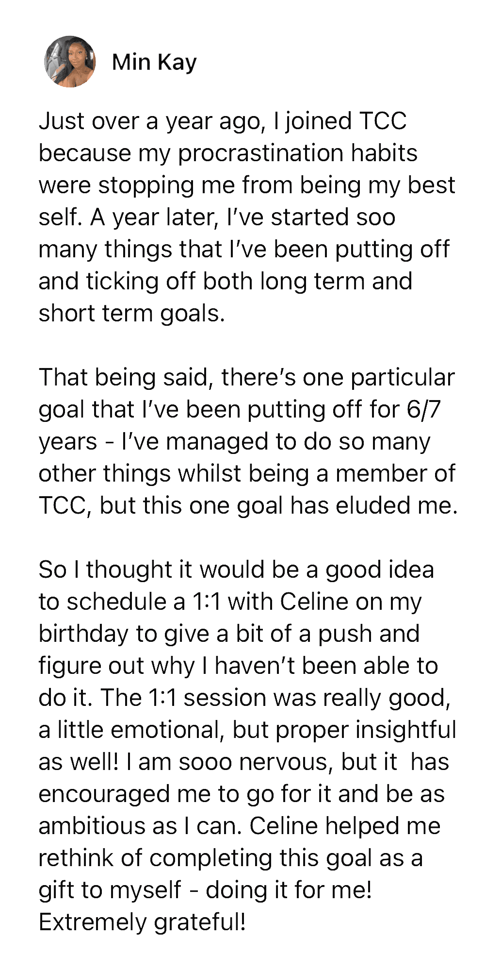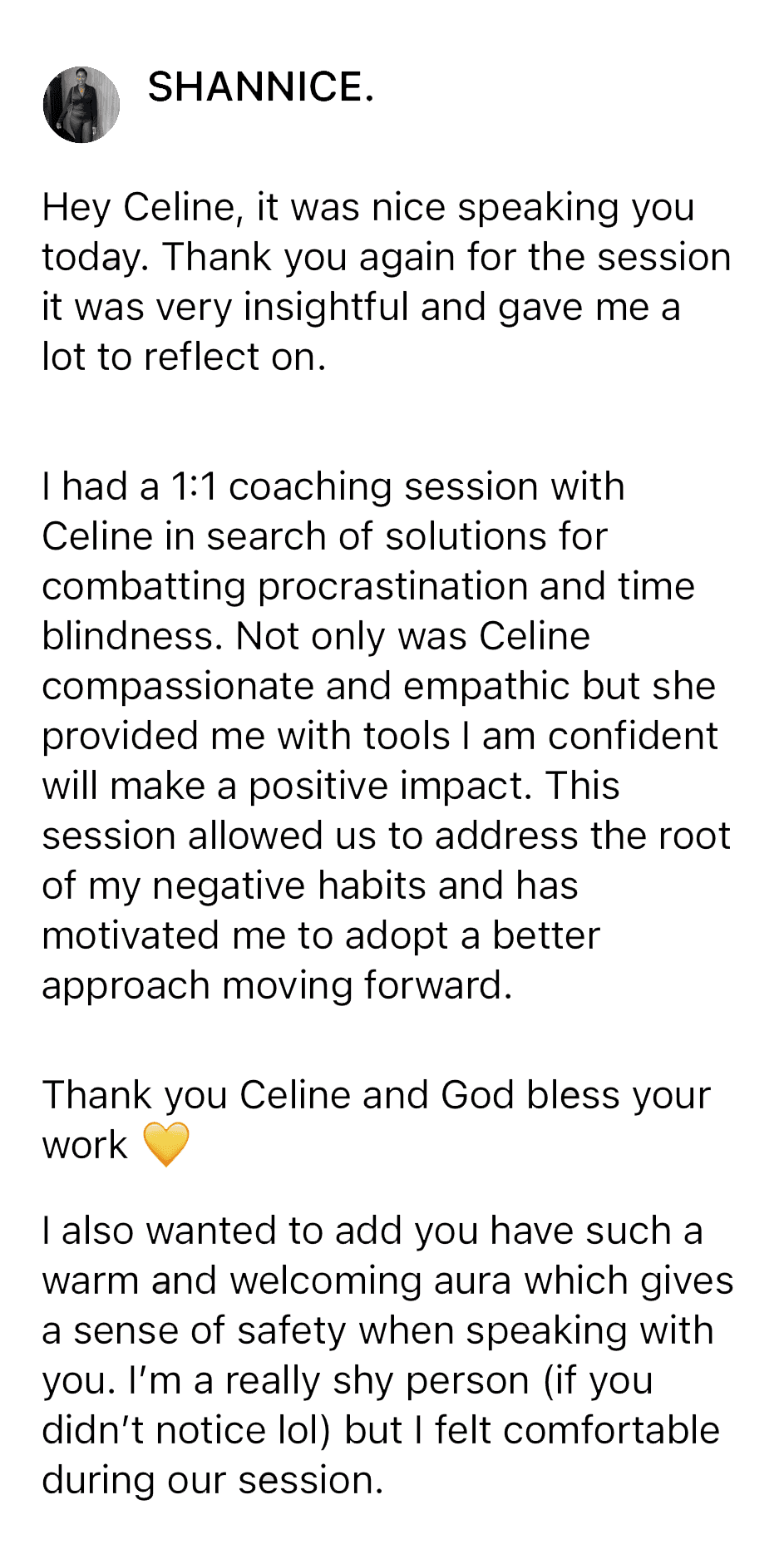 "I help high-functioning people break the cycle of procrastination, overthinking and self-doubt – so they can stop spiraling and finally follow through."